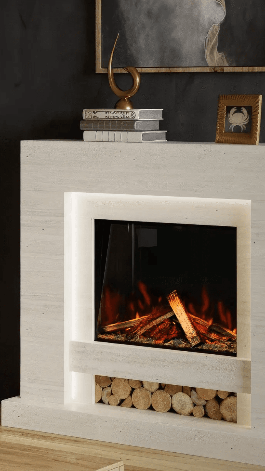 Elevate your space with our handcrafted luxury fireplace suites. Crafted in our in-house factory, choose from premium marble or rich wood finishes, real logs, and ambient lighting options. Blend timeless craftsmanship and modernity to create the perfect focal point for your home.