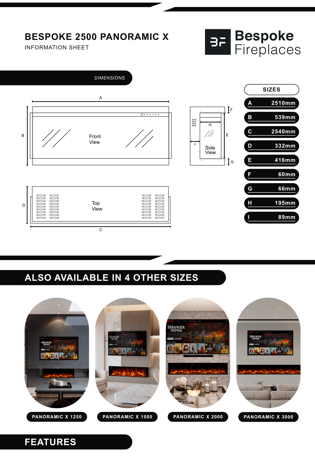 Prepare to be captivated by the pinnacle of opulence – the Panoramic X 2500 from Bespoke Fireplaces. Crafted with meticulous attention to detail and a commitment to unparalleled sophistication, our Panoramic X 2500 stands as the ultimate expression of luxury in the world of bespoke fireplaces.